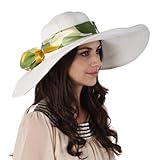 Review - Luxury Lane Women's White Floppy Paper Straw Sun Hat with Removable Green Scarf